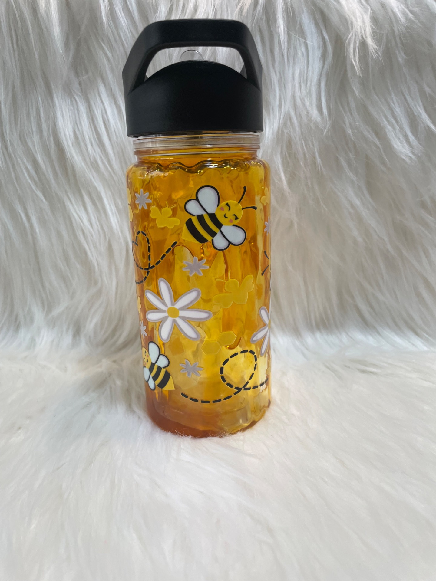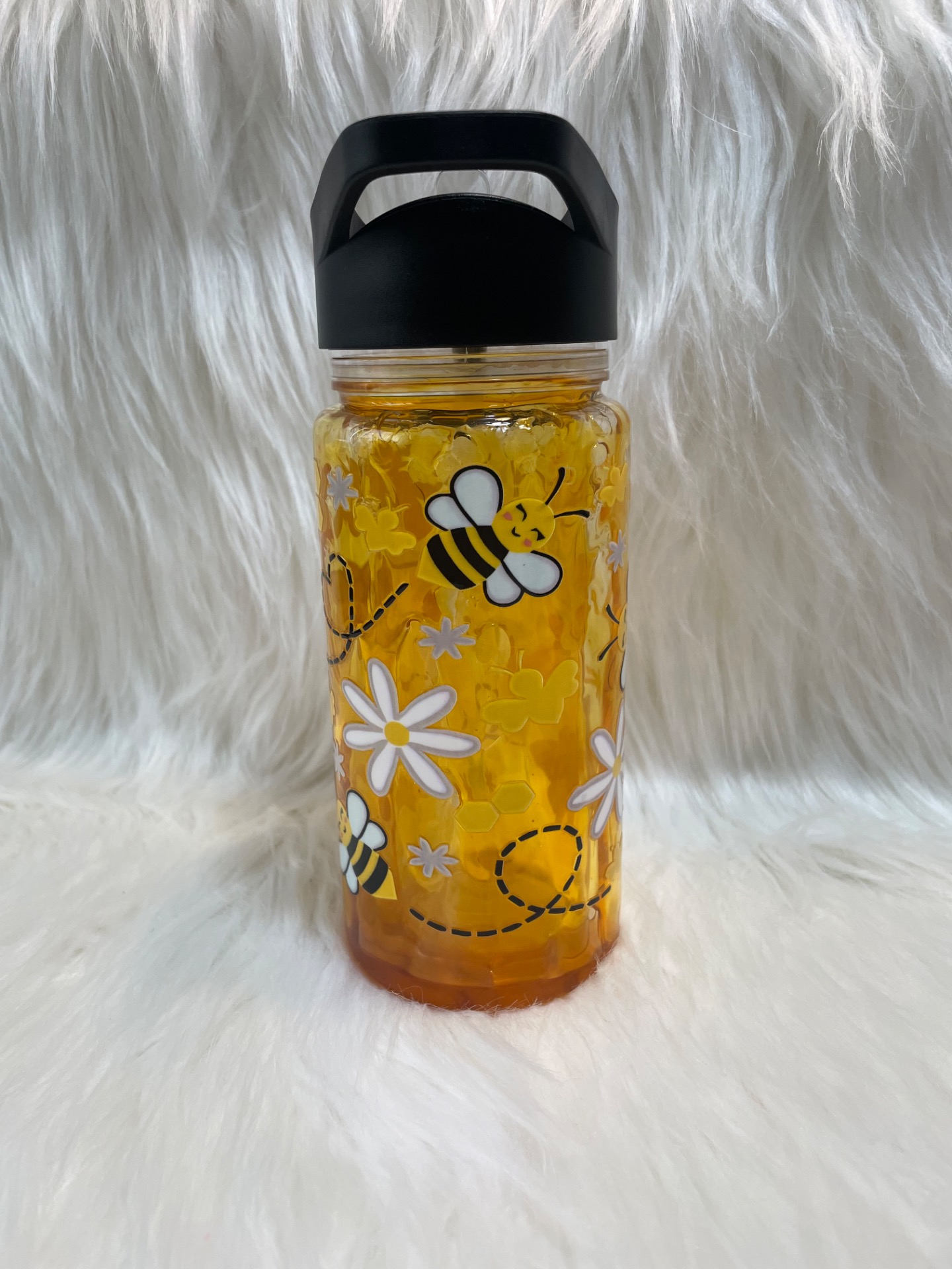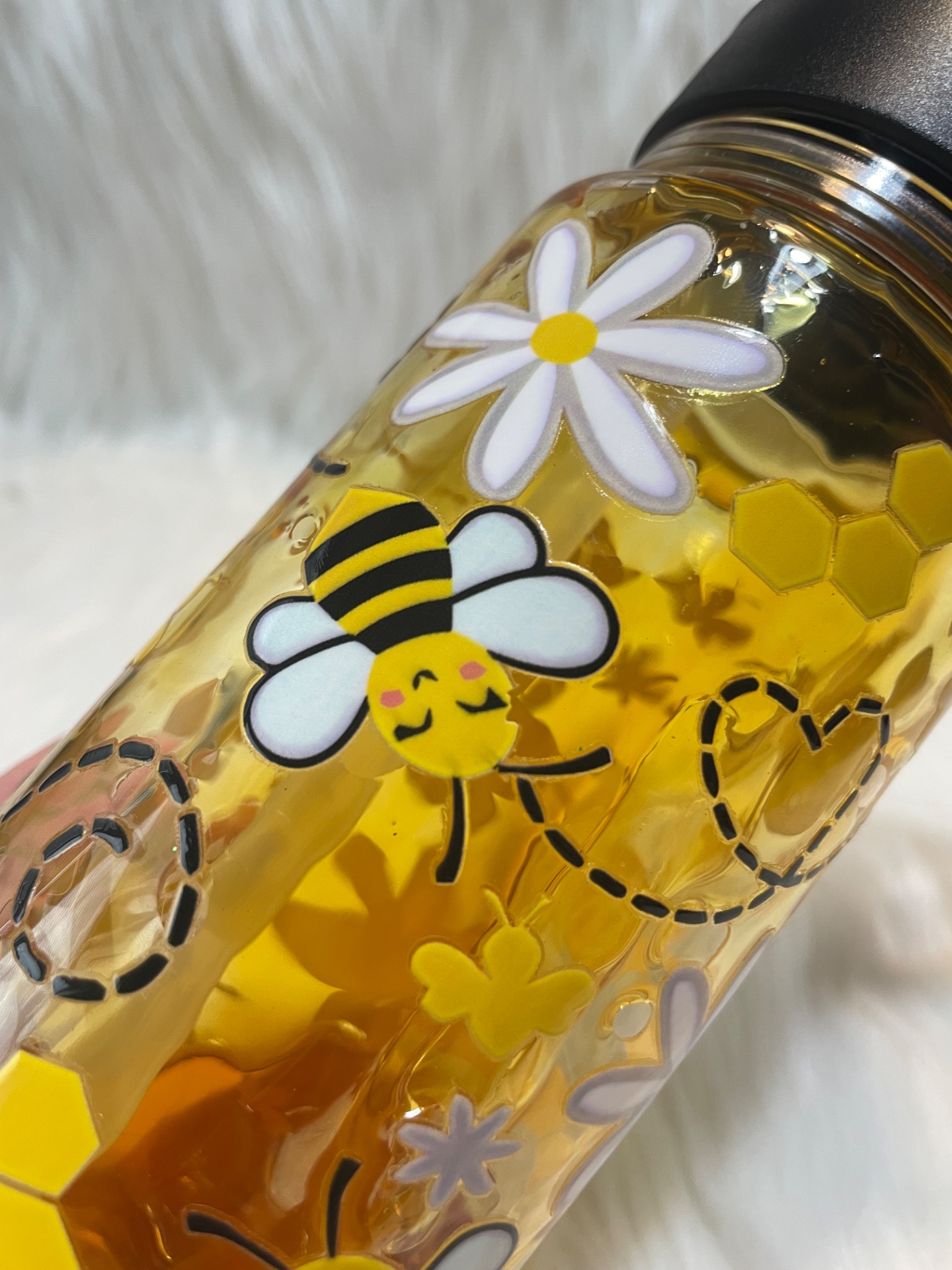 Roztomilá medová sklenice Bee #1 přináší radost na první pohled. Průhledné tělo nádherně připomíná strukturu pláství a uvnitř hraje teplá medová barva, která vytváří jemný efekt tekoucího medu. Sklenice je zdobená veselými motivy včeliček, květin a puntíkovaných letových čar, díky čemuž působí hravě a pozitivně.