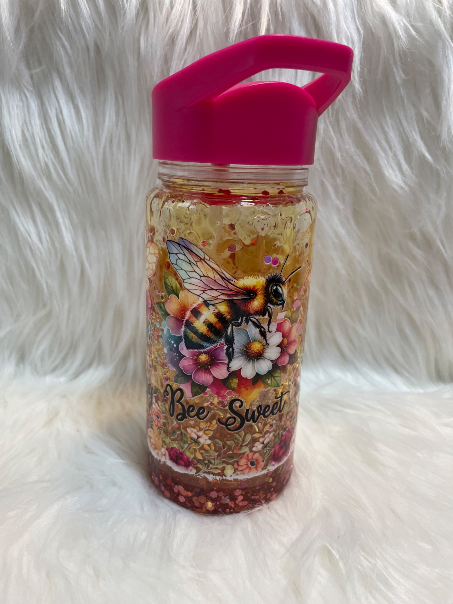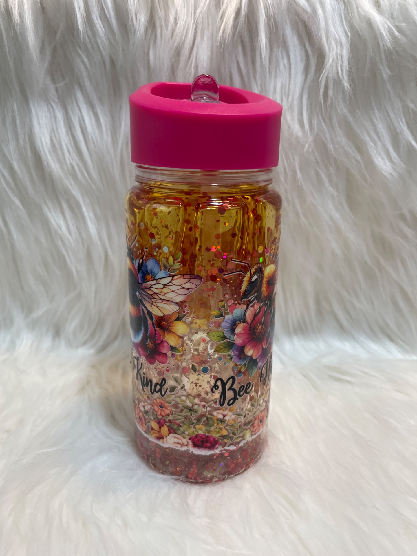 Honey Glitter sklenice "Bee Sweet" spojuje medový efekt se zářivým třpytem, takže působí jako malá láhev plná slunce a sladkosti. Uvnitř se jemně převalují zlaté, oranžové a růžové flitry, které vytvářejí teplý, zářivý glitter efekt inspirovaný medem a květy.