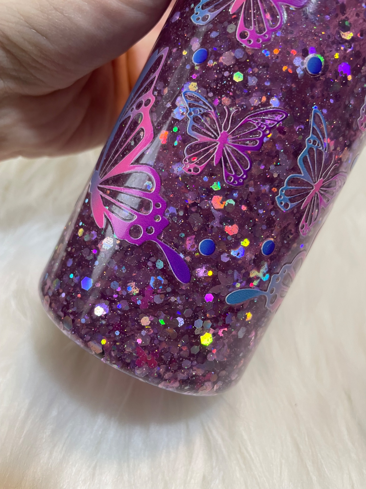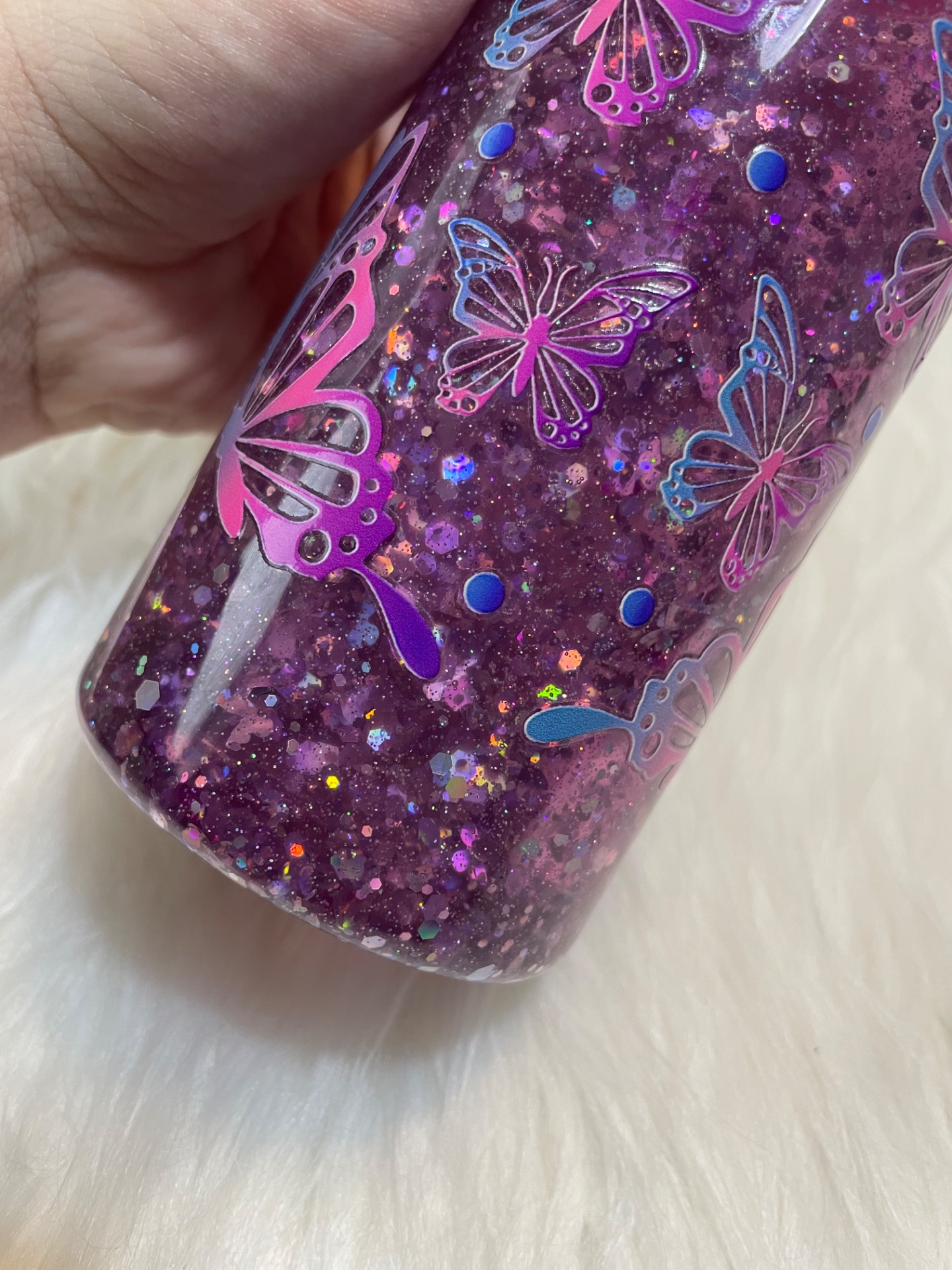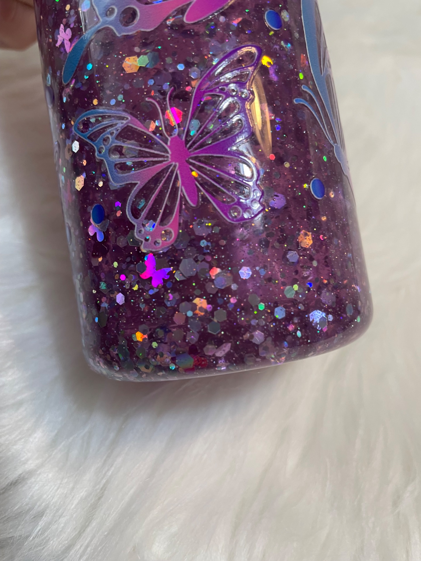 Glitter sklenice "Butterfly Dream" je splněným snem pro všechny milovnice motýlů a třpytu. Uvnitř sklenice se nádherně lesknou fialové, růžové a holografické glittry, které se při každém pohybu jemně přesouvají a vytvářejí efektní jiskřivou podívanou.