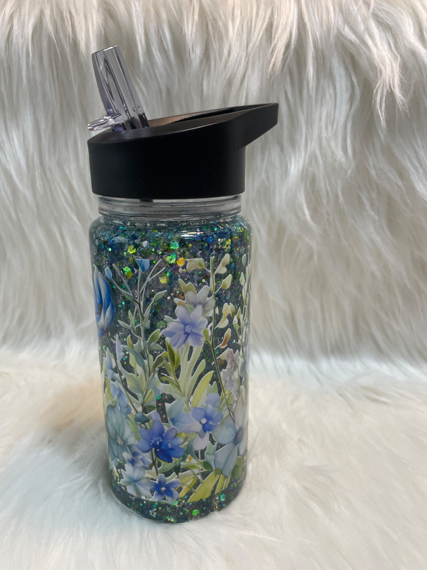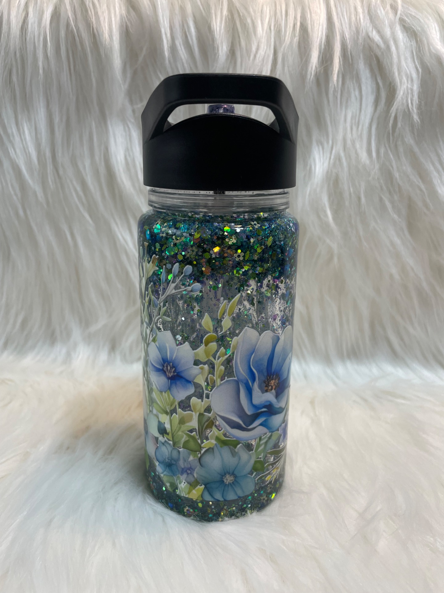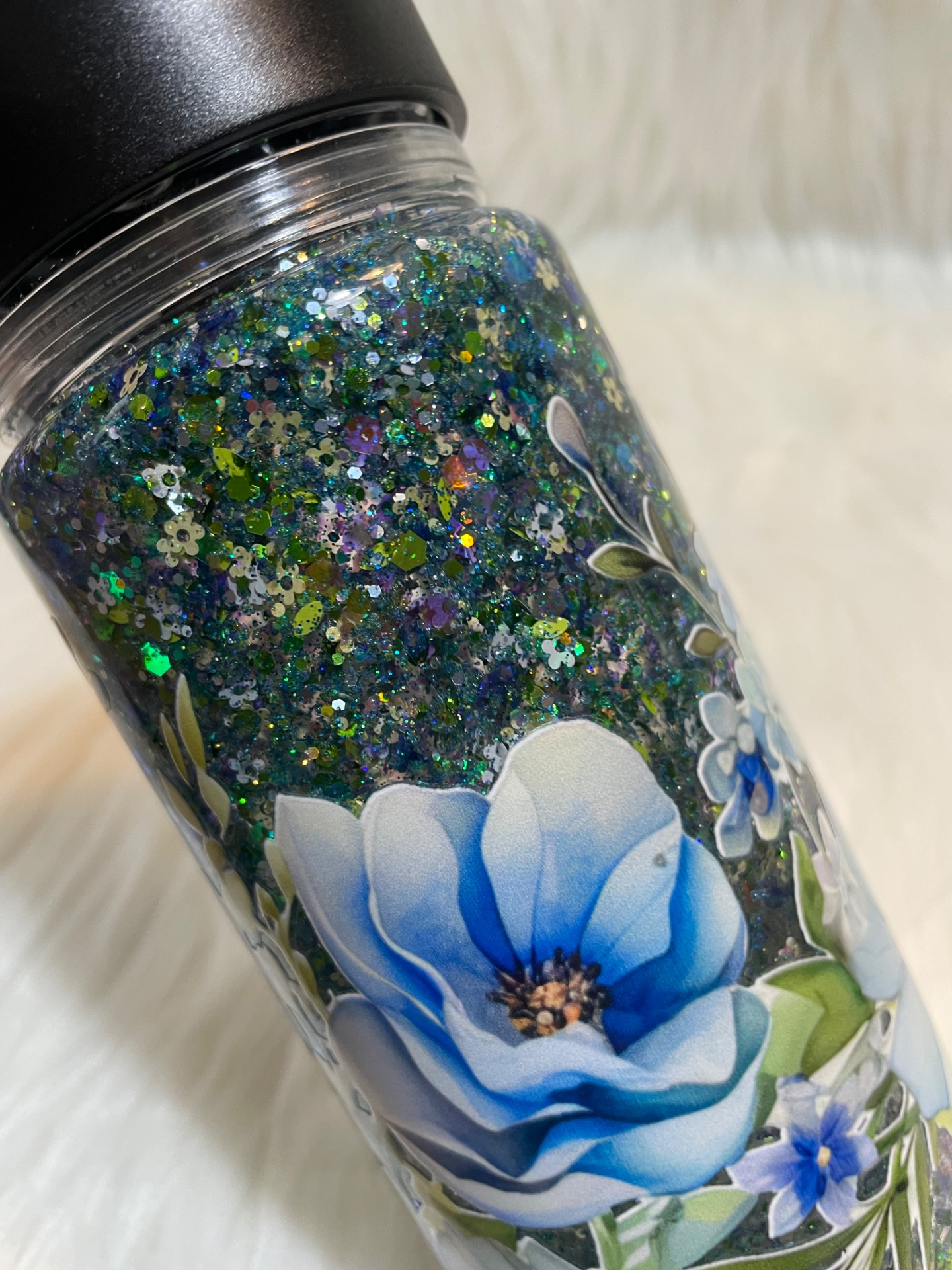 Glitter sklenice FLOWER Blue je jemná, elegantní a zároveň okouzlující. Uvnitř se třpytí modré, zelené a holografické glittry, které se při každém pohybu nádherně rozzáří a vytvoří magický efekt. Celkový dojem působí jako třpytivá kapka vody v ranním slunci.