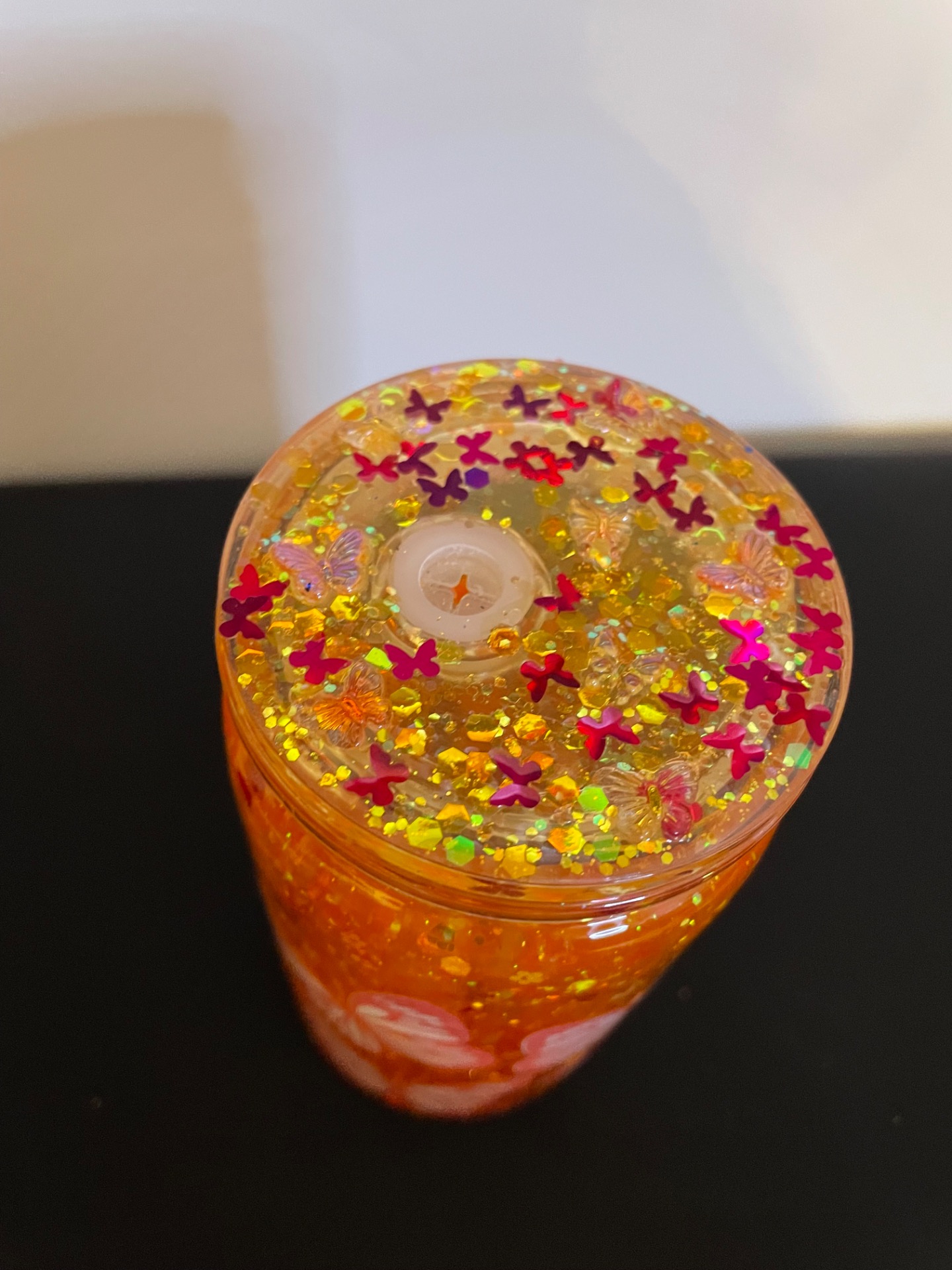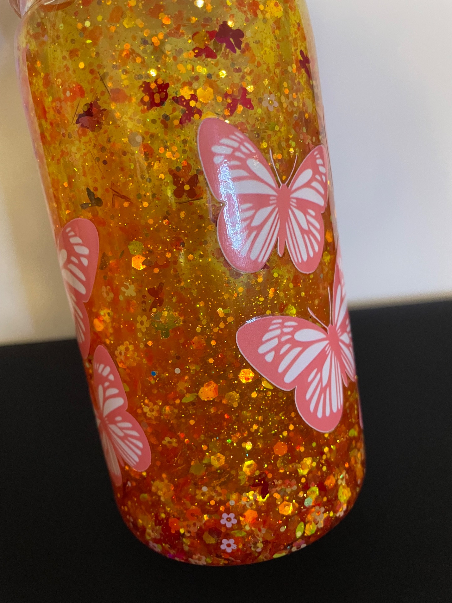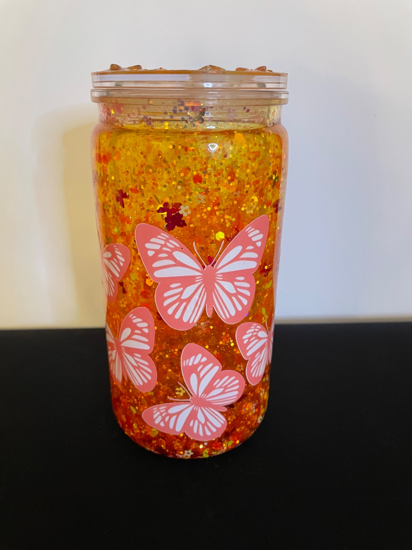 Glitter cup- BUTTERFLY orange