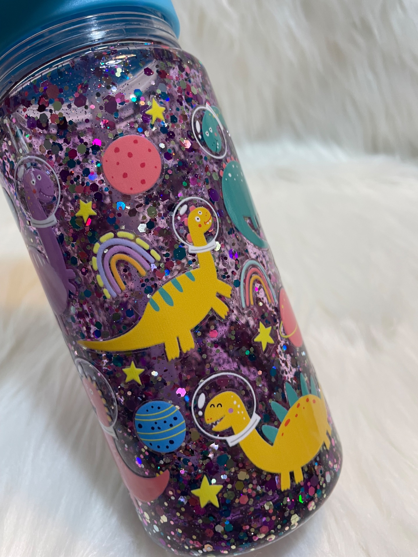 Vstup do vesmíru plného barev, třpytek a roztomilých dinosaurů! Láva sklenice Dino Galaxy je jako malý vesmír v ruce – po zatřesení se uvnitř roztančí fialovo-růžové glittry, které vytvářejí hypnotický lávový efekt. Každý pohyb promění sklenici v zářící galaxii.